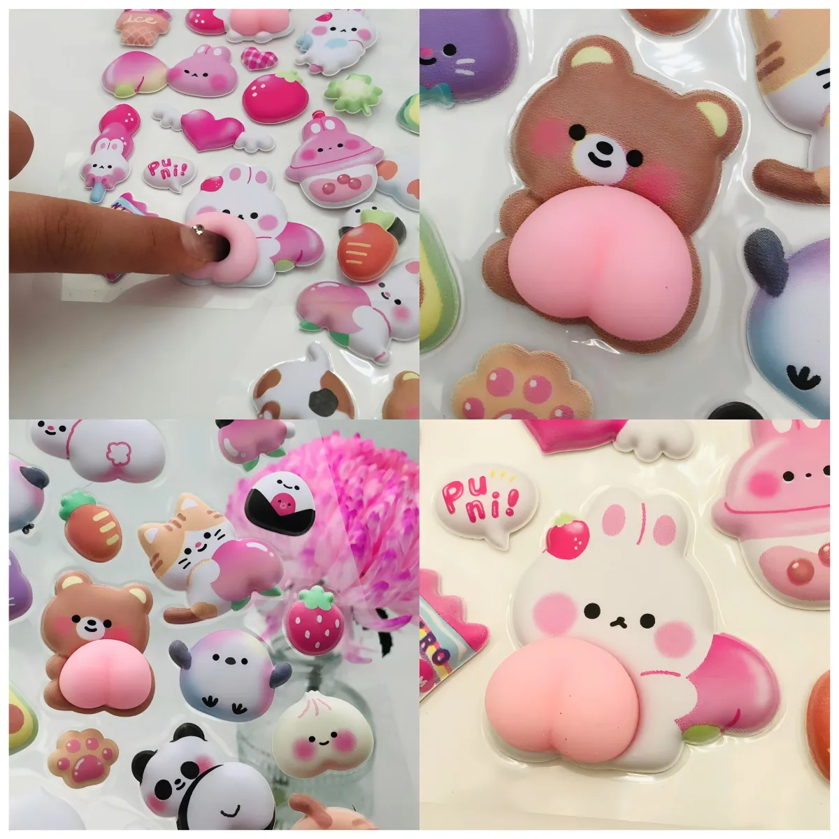 A2: 3D Squishy butt etiketləri ağır təzyiq altında əyilmiş, kəskin dırnaqlardan çəkinin.