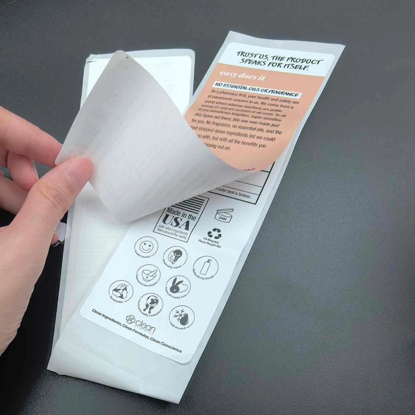 Qabıq və etiketləri oxuyun:Ən əsas növ, bu da kosmetik etiketlər üçün çox qatlı adlanır, üst qatın soyulması asandır və daxili təbəqədə geniş məlumat var. Tez-tez üz maskaları, serums və digər kiçik məhsullar üçün istifadə olunur.