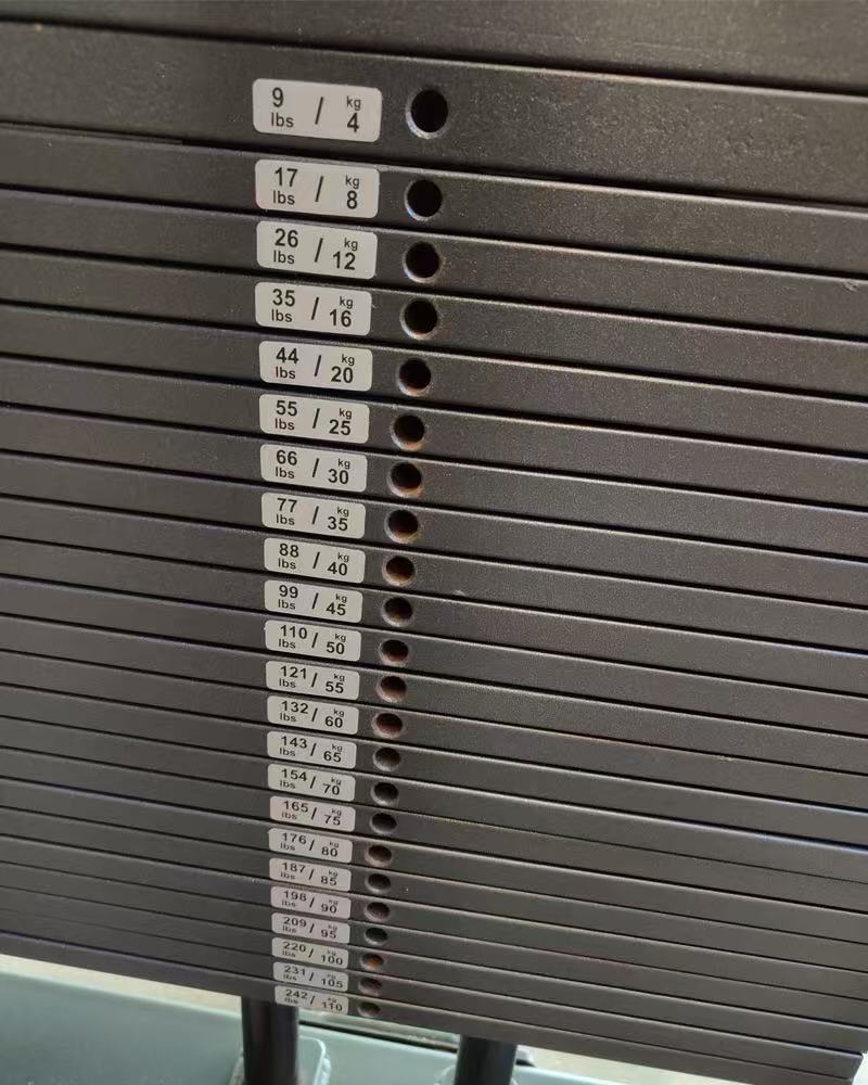Hər bir stiker aydın şəkildə çəki dəyərləri ilə qeyd olunur ki, bu da istifadəçilərə məşq intensivliyinə uyğun çəki bloklarını tez müəyyən etməyə və seçməyə və məşqlər zamanı tez-tez çəkinin qarşısını almağa imkan verir.