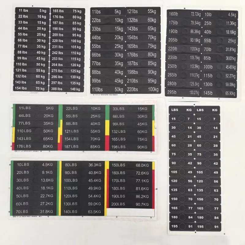 A2: Bu çəki stikerləri güc təlimi maşınları üçün dumbbells, barbells, çəki lövhələri və çəki yığınları kimi müxtəlif fitnes avadanlığına tətbiq olunur.